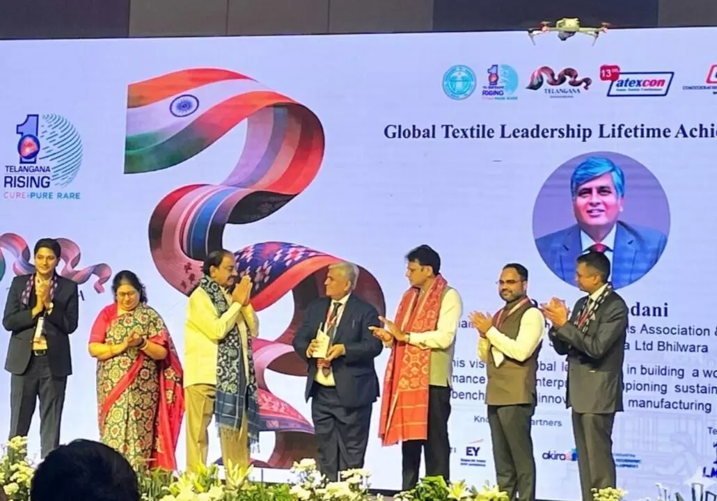 भीलवाड़ा । टेक्सटाइल नगरी भीलवाड़ा के लिए गर्व का क्षण है। संगम ग्रुप के वाइस चेयरमैन और राजस्थान टेक्सटाइल मिल्स एसोसिएशन (RTMA) के चेयरमैन डॉ. एस. एन. मोदानी को 'ग्लोबल टेक्सटाइल लीडरशिप लाइफटाइम अचीवमेंट अवॉर्ड 2026' से नवाजा गया है। कन्फेडरेशन ऑफ इंडियन टेक्सटाइल इंडस्ट्री (CITI) द्वारा आयोजित 13वें एशियन टेक्सटाइल कॉन्फ्रेंस (ATEXCON 2026) के दौरान उन्हें यह प्रतिष्ठित सम्मान प्रदान किया गया।