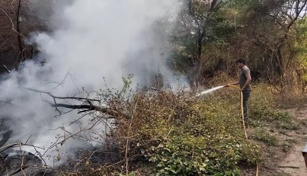 सवाईपुर ( सांवर वैष्णव ):- सवाईपुर क्षेत्र के बोरखेड़ा गांव में देवनारायण भगवान की बनी में अज्ञात कारणों के चलते भीषण आग लग गई, आग तेज हवा के चलते फैलने गई, दमकल की मदद से बड़ी मशक्कत से आग पर काबू पाया गया । ग्रामीण ओमेंद्र सिंह व विक्रम विरेंद्र सिंह ने बताया कि बोरखेड़ा गांव में बोरिया के देवनारायण भगवान की बन्नी में दोपहर बाद अज्ञात कारणों के चलते भीषण आग लग गई, आग की सूचना मिलते ही ग्रामीण मौके पर पहुंचे और आग बुझाने का प्रयास किया, लेकिन हवा के चलते आग पर काबू नहीं पाया गया और आग तेजी से फैलने लगी । ग्रामीणों ने इसकी सूचना दमकल विभाग को दी, भीलवाड़ा से पहुंची दमकल ने दो फेर कर ग्रामीणों की मदद से बड़ी मशक्कत के बाद आग पर काबू पाया । आग से करीब एक बीघा से अधिक क्षेत्रफल में अंग्रेजी बबलू, जनमनी, पेड़-पौधे व छोटे जीव जंतु जलकर राख हो गए । ग्रामीणों की सजकता से समय रहते आग लग काबू पाया गया।