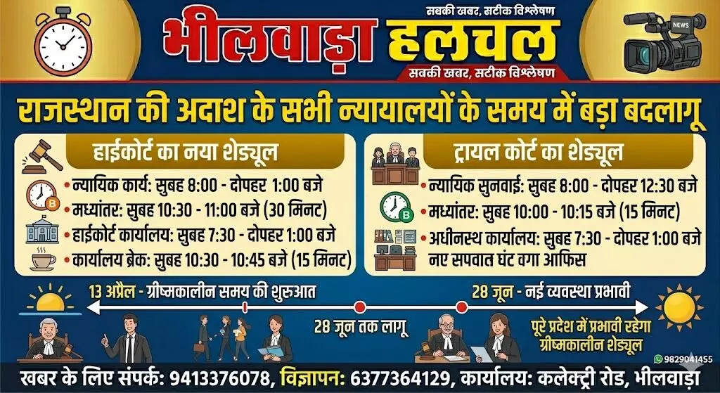 राजस्थान की अदालतों में ग्रीष्मकालीन समय लागू: 13 अप्रैल से सुबह 8 बजे शुरू होगी सुनवाई