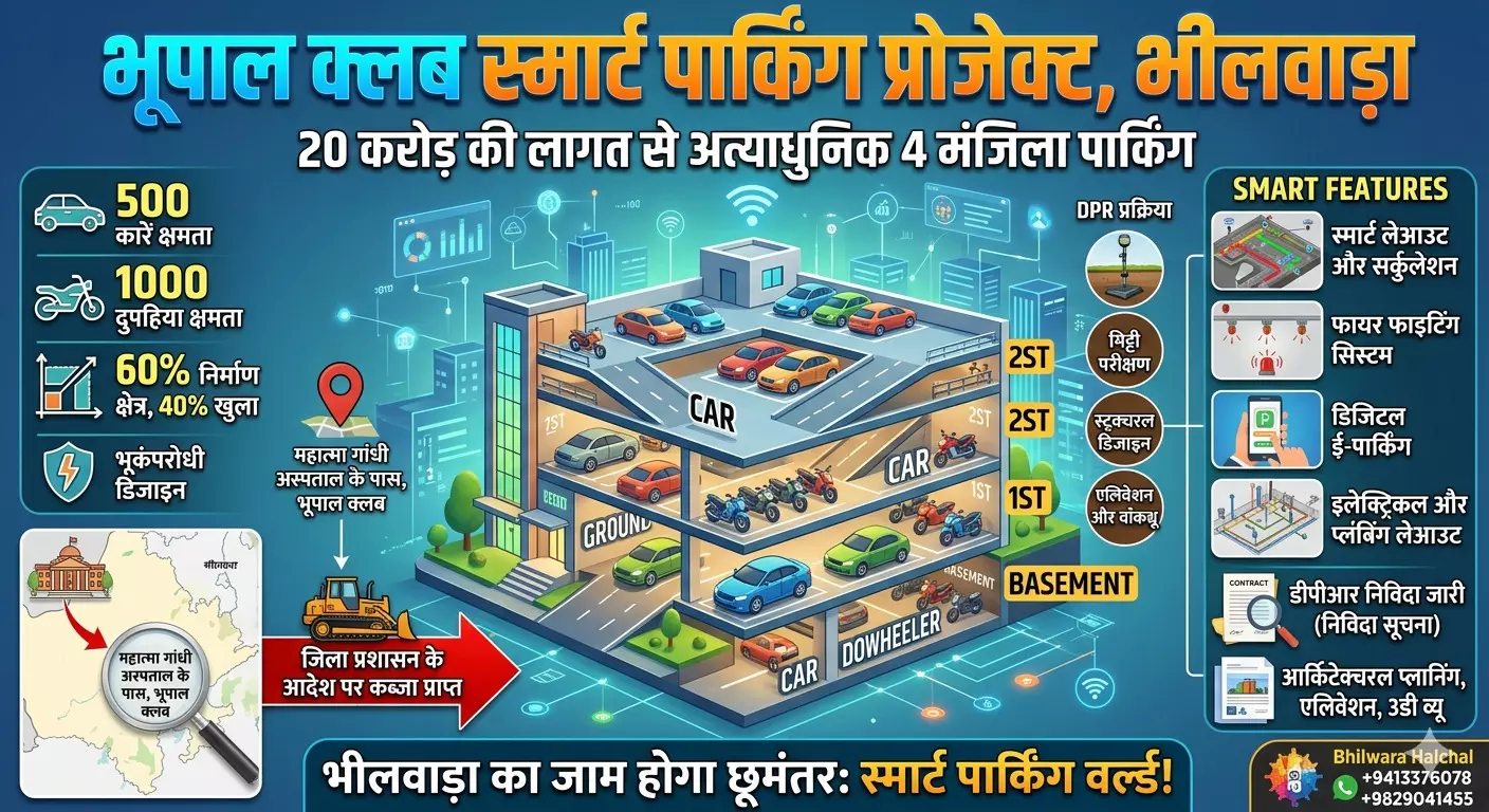 भीलवाड़ा का 'जाम' होगा छूमंतर: भूपाल क्लब में बनेगा 20 करोड़ का 'स्मार्ट पार्किंग वर्ल्ड', 1500 वाहनों का नया ठिकाना!