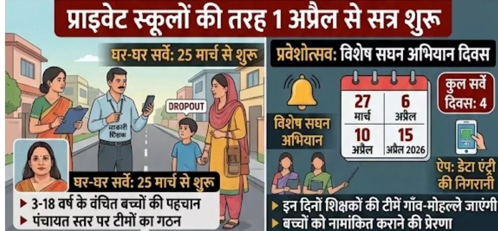 सरकारी स्कूलों में नामांकन बढ़ाने के लिए 'प्रवेशोत्सव' सघन अभियान, 25 मार्च से घर-घर सर्वे