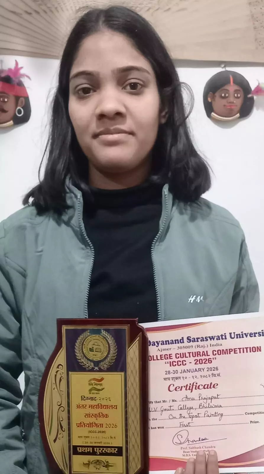 आकृति कला संस्थान भीलवाड़ा और एमएलवी गवर्नमेंट कॉलेज की छात्रा अन्नु प्रजापत ने इस प्रतियोगिता में महर्षि दयानन्द सरस्वती विश्वविद्यालय (MDSU), अजमेर का प्रतिनिधित्व किया। सीवीएम विश्वविद्यालय, आनंद (गुजरात) में आयोजित इस उत्सव में अन्नु ने "प्रकृति के बदलते स्वरूप" विषय पर अपनी तूलिका से शानदार पेंटिंग तैयार की, जिसे निर्णायकों ने बेहद सराहा।