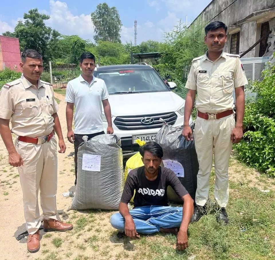 सवाईपुर के पास कार से 54 किलो डोडा चूरा बरामद, एक तस्कर गिरफ्तार, एक फरार