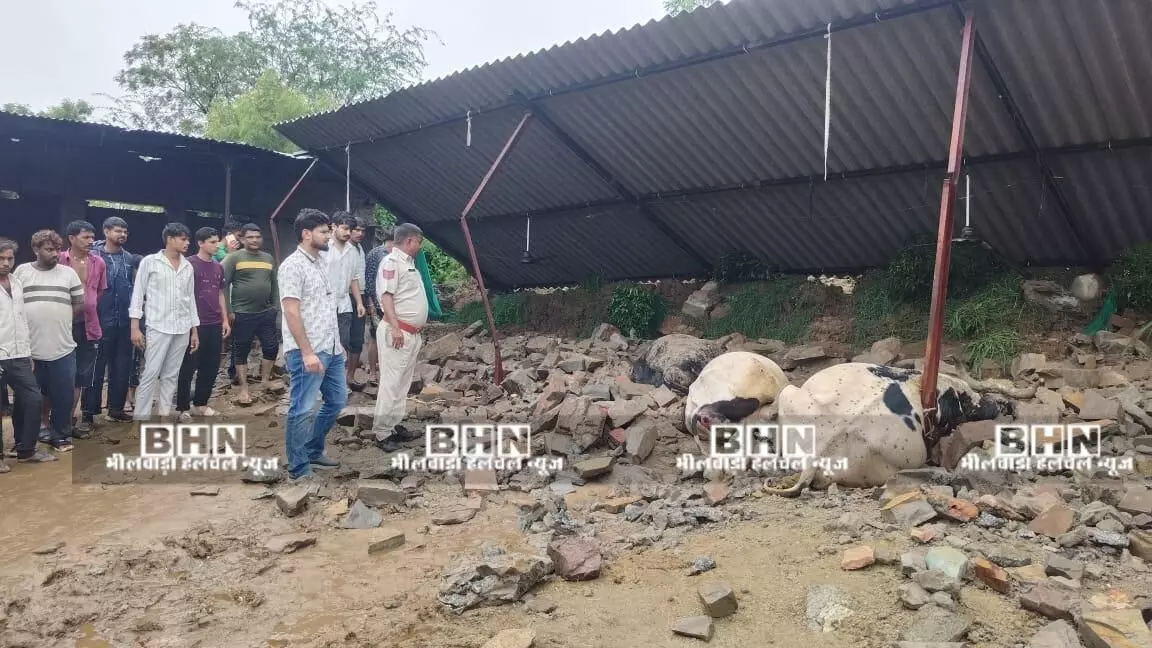 तेज बारिश के चलते बाड़े की दीवार ढही, तीन गायों व एक भैंस की मौत