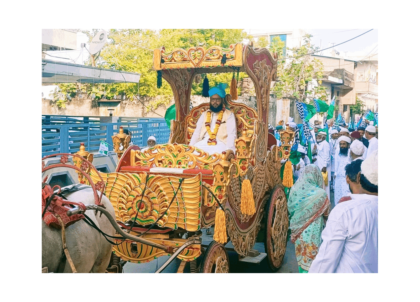 जुलूस की अग्रिम पंथी में बग्गी से मस्जिद के इमाम अब्बू जफर सिद्दीकी की सवारी निकाली गई, जुलूस में मजहबी नारों के साथ बालक बालिकाएं तख्तियां लेकर चल रही थी जुलूस का जगह-जगह स्वागत किया गया और मुस्लिम परिवारों ने प्रसाद तबर्रुक वितरित किया , जुलूस सुभाष नगर के विभिन्न मोहल्लों से होता हुआ पुनः मस्जिद चौक आकर समाप्त हुआ जहां भाईचारा कमेटी ने सभी धर्मावलंबियों को खीर वितरित की ।