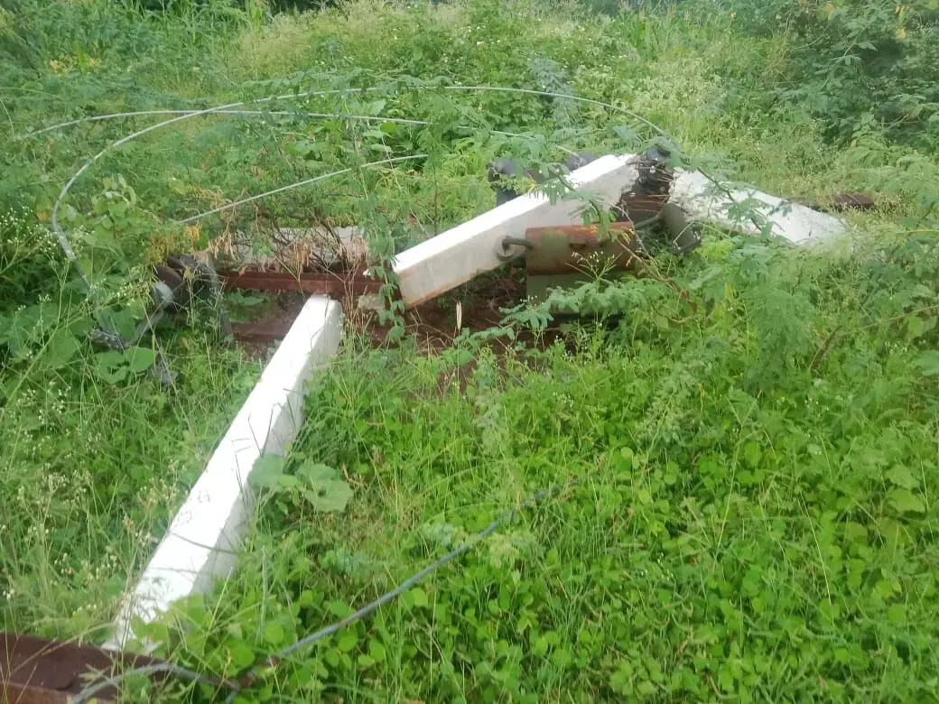 बिजली विभाग की अनदेखी से किसान की फसल पर संकट, दो महीने से ट्रांसफॉर्मर पोल गिरे पड़े हैं