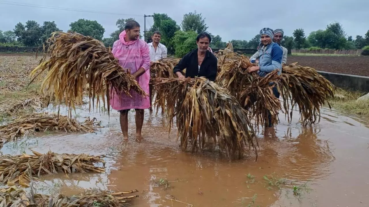 सवाईपुर क्षेत्र मे तीसरे दिन थमा बारिश का दौर, पानी में डुबी फसलें, बचाने की जुगत में जुटे किसान