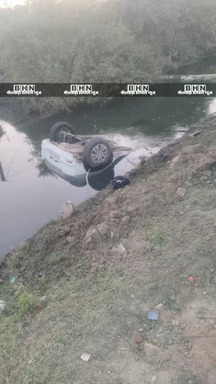 मांडल में तेज रफ्तार कार नहर में गिरी, सभी सवार सुरक्षित