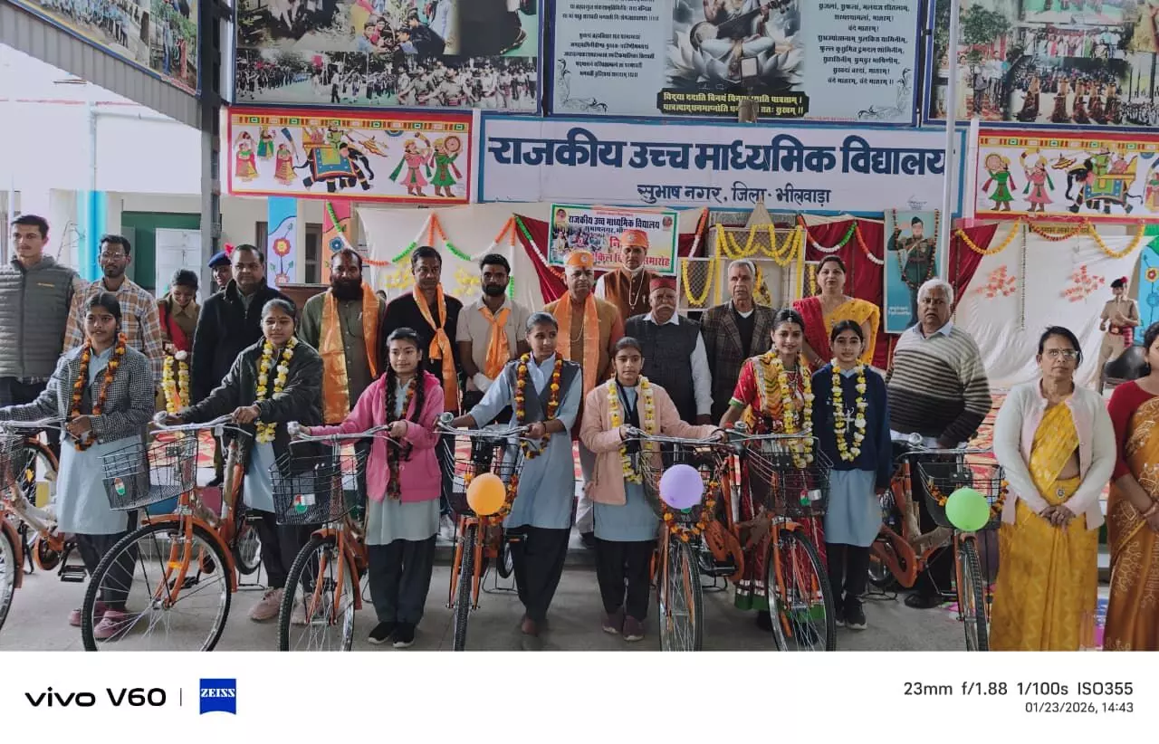 भीलवाड़ा। राजकीय उच्च माध्यमिक विद्यालय सुभाष नगर में शुक्रवार को मेघा पीटीएम और निपुण मेले के आयोजन के साथ कक्षा 9 में अध्ययनरत 91 बालिकाओं को नि:शुल्क साइकिलें वितरित की गईं। कार्यक्रम में विधायक प्रत्याशी भीलवाड़ा विट्ठल शंकर अवस्थी मुख्य अतिथि रहे जबकि प्रधानाचार्य उर्मिला जोशी की अध्यक्षता में आयोजन संपन्न हुआ।