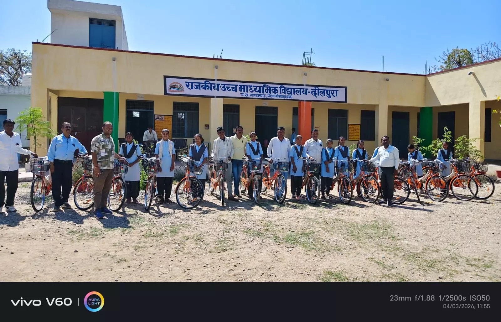 आकोला (रमेश चंद्र डाड)महुआ क्षेत्र के दौलपुरा गांव में राजकीय उच्च माध्यमिक विद्यालय में राज्य सरकार की शिक्षा प्रोत्साहन योजना के अंतर्गत विद्यालय में 16 बालिकाओं को निः शुल्क साइकिल वितरण कि गई।बालिकाएं साइकिल पाकर चेहरे पर मुस्कान नजर आए मुख्य अतिथि अतिथियों की उपस्थिति में कार्यक्रम का आयोजन विद्यालय परिसर में किया गया इस मौके पर सरपंच रामजस दाधीच,बनवारी वैष्णव,आशीष दाधीच,महावीर सिंह शक्तावत, दुदा लाल धाकड़, बसंती लाल सेन,सहित विद्यालय स्टॉप, ग्रामीण मौजूद रहे।