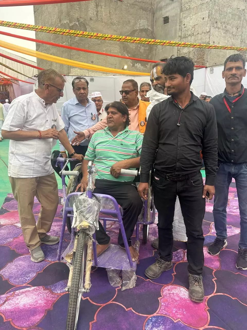 भीलवाड़ा । "परम पूज्य स्वामी वामदेव जी महाराज का जीवन परोपकार का पर्याय था। आज उनके शताब्दी महोत्सव पर दिव्यांगजनों को संबल प्रदान करना ही उन्हें सच्ची भावांजलि है। नर सेवा ही नारायण सेवा है और जब एक दिव्यांग व्यक्ति को कृत्रिम अंग या उपकरण मिलता है, तो वह केवल उसे सहारा नहीं, बल्कि स्वावलंबन और सम्मान से जीने का अधिकार मिलता है। यह बात "पूज्यपाद ब्रह्मलीन विरक्त शिरोमणि परमहंस स्वामी वामदेव महाराज के शताब्दी आनंद महोत्सव के पावन अवसर पर श्रीधाम वृंदावन में सेवा की अनूठी सरिता के दौरान वक्ताओं ने कही। तीन दिवसीय नि:शुल्क विशाल कृत्रिम अंग प्रत्यारोपण एवं दिव्यांग उपकरण वितरण शिविर के प्रथम दिन शुक्रवार को 250 से अधिक दिव्यांगों के जीवन में नई रोशनी आई। शिविर के पहले दिन उत्साहजनक माहौल रहा। सेवा के संकल्प के साथ शुरू हुए इस अभियान में प्रथम दिन ही 58 ट्राईसाइकिल, 15 व्हीलचेयर, 50 बैशाखी और 50 श्रवण यंत्र वितरित किए गए। इसके साथ ही दिव्यांगों की शारीरिक आवश्यकतानुसार 10 कैलीपर, 17 कृत्रिम पैर, 7 कृत्रिम हाथ, 15 स्टिक, 4 ब्लाइंड स्टिक और 10 वॉकर प्रदान कर उन्हें संबल दिया गया। यह पुनीत कार्य भगवान महावीर विकलांग सहायता समिति (जयपुर), भारत विकास परिषद (राजस्थान मध्य प्रांत) एवं स्वामी वामदेव अखण्ड ज्योति सेवा ट्रस्ट के संयुक्त तत्वावधान में आयोजित किया जा रहा है। शिविर में सेवा के लिए प्रांतीय और क्षेत्रीय स्तर के पदाधिकारी जुटे हुए हैं।