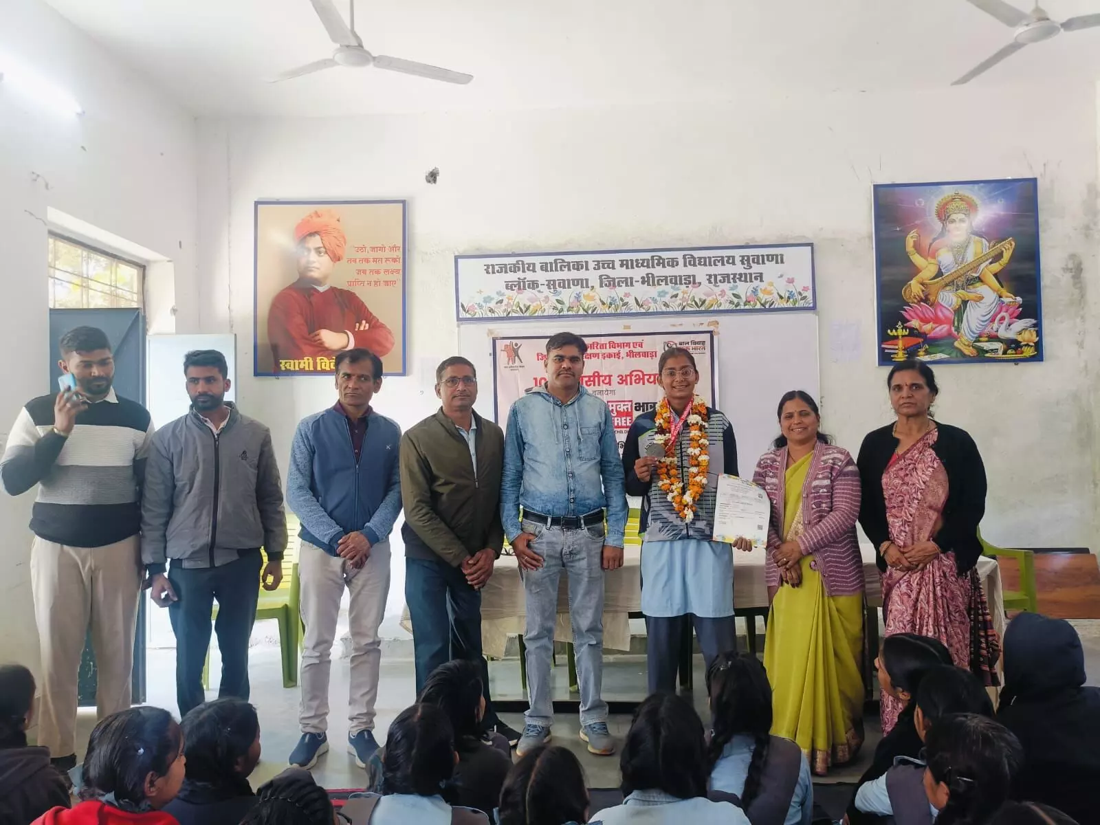 भीलवाड़ा |सरकार द्वारा चलाए जा रहे 100 दिवसीय बाल विवाह मुक्त अभियान के तहत बाल अधिकारिता विभाग एवं जिला बाल संरक्षण इकाई के सहायक निदेशक धर्मराज प्रतिहार के निर्देशानुसार राजकीय बालिका उच्च माध्यमिक विद्यालय सुवाना में बाल विवाह की रोकथाम हेतु जागरूकता गतिविधि आयोजित की गई, गतिविधि में बताया गया बाल विवाह एक अभिशाप है और इसको रोकने के लिए सभी का जागरूक होना आवश्यक है, गतिविधि के दौरान बच्चो के साथ खेल गतिविधि आयोजित कर बाल विवाह अधिनियम की जानकारी दी गई एवं बाल विवाह रोकथाम के लिए शपथ दिलाई गई, बच्चो को बताया गया कि बाल विवाह को रोकने के लिए चाइल्ड हेल्पलाइन नंबर 1098 पर सूचना दी जा सकती है, सूचना देने वाले का नाम गोपनीय रखा जाएगा। इस जागरूकता गतिविधि में चाइल्ड हेल्पलाइन 1098 के परियोजना समन्वयक हेमंत सिंह सिसोदिया एवं सुपरवाइजर राधेश्याम गुर्जर ने बच्चो को जानकारी दी। इस गतिविधि में विद्यालय प्रिंसिपल सरोज लड़ा, अध्यापिका शशिकला, अध्यापक चेतन जी उपस्थित रहे, साथ इस दौरान क्लास 9 की छात्रा खुशी जाट को राष्ट्रीय स्तर पर वालीबॉल प्रतियोगिता में तीसरे स्थान पर आने पर सम्मानित किया गया।
