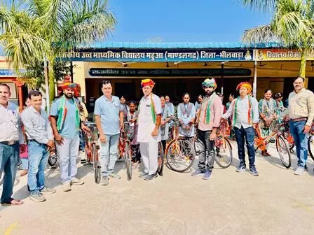 आकोला (रमेश चंद्र डाड) महुआ कस्बे में स्थित राजकीय उच्च माध्यमिक विद्यालय में 9वी कक्षा की छात्राओं को निशुल्क 37 साइकिल वितरित की गई कार्यक्रम में अतिथि के रूप में महुआ मंडल उपाध्यक्ष रणवीर सिंह शक्तावत , युवा मोर्चा मंडल अध्यक्ष जितेंद्र प्रजापत, कृष्ण गोपाल सिंह शक्तावत,बनवारी लाल धाकड़ उपस्थित रहे!मंडल उपाध्यक्ष रणवीर सिंह उद्बोधन द्वारा सभी छात्राओं का उत्साह वर्धन किया
