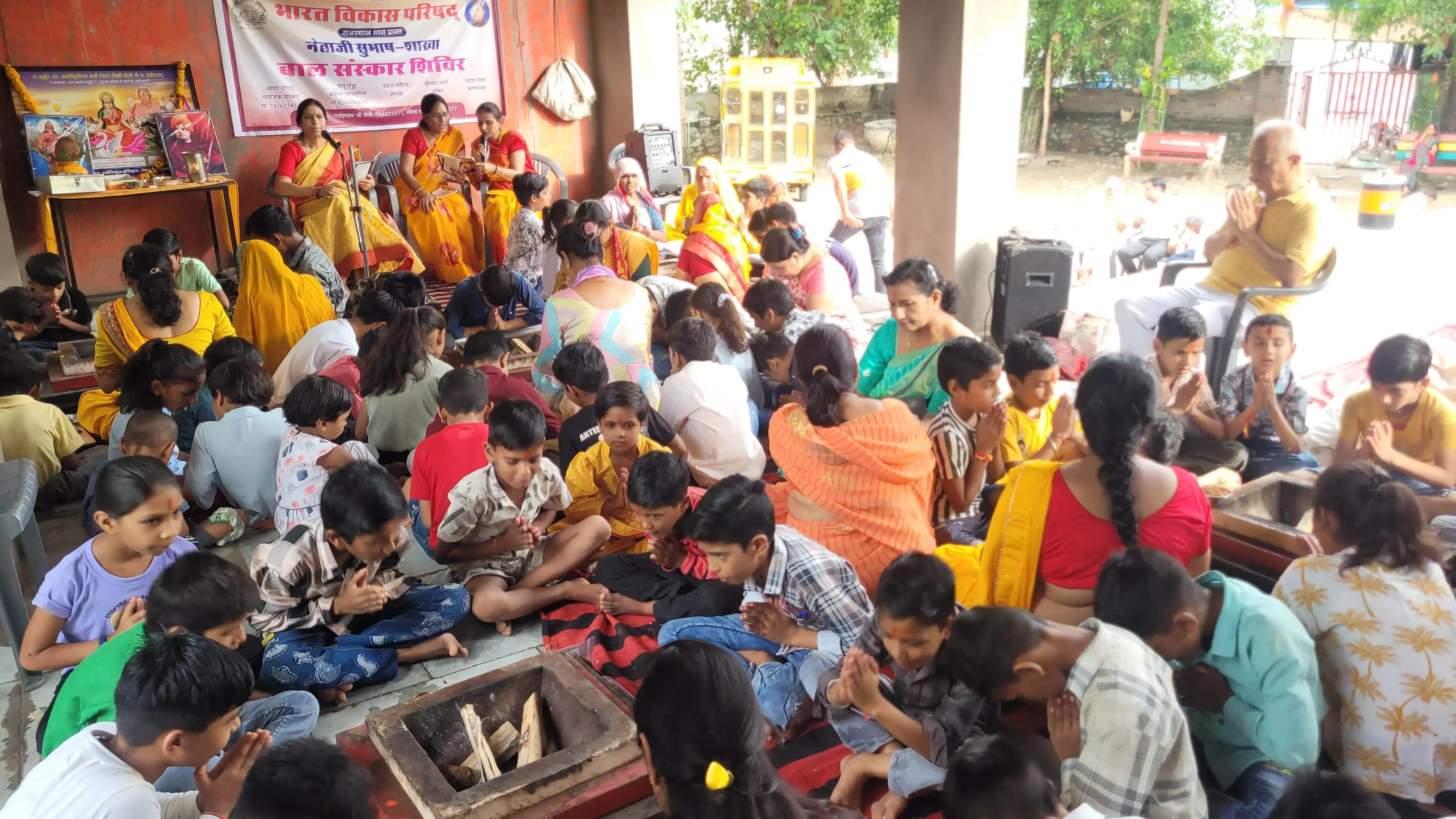 शिविर का समापन गायत्री हवन के साथ हुआ, जिसमें गायत्री परिवार द्वारा बच्चों को सरल और सौम्य तरीके से हवन करना सिखाया गया। बच्चों में हवन में बैठने का उत्साह देखते ही बन रहा था। शाखा के अध्यक्ष पंकज लोहिया ने बताया कि नेताजी सुभाष शाखा ने केंद्र व प्रांत द्वारा प्रदत्त बाल संस्कार के सभी विषय, जैसे भगवद गीता, रामायण, महापुरुषों की जीवनी, प्रेरक कहानियाँ व कविताएँ, गुड टच बैड टच के बारे में जानकारी, भारत देश व स्वतंत्रता सेनानियों के बारे में जानकारी, पारंपरिक खेल, और मोबाइल से दूर रहने की नसीहत, आदि सभी विषयों को बच्चों के बीच करवाने का पूर्ण प्रयास किया। वंचित बस्ती की बच्चों व महिलाओं को आत्मनिर्भर करने के लिए महिला जागरूकता के तहत पिंकी लड्डा द्वारा 6 दिवसीय मेहंदी बनाना सिखाया गया। शाखा की महिला जागरूकता प्रभारी सुनीता नरवाल ने बताया कि इसमें 47 महिला व बच्चे लाभान्वित रहे। महिलाओं को आत्मनिर्भर बनाने के लिए ऐसी बस्तियों में निरंतर शिविर लगाए जाएंगे। कार्यक्रम में प्रांतीय संपर्क संयोजक रजनीकांत आचार्य, संस्कार संयोजक अरुण बाहेती, बाल संस्कार शिविर संयोजक बालमुकुंद डाड, शाखा से महावीर सोनी, महेंद्र माहेश्वरी, कैलाश सोमानी , शाखा सचिव कैलाश शर्मा, कोषाध्यक्ष सुरेश रावत, महिला सभा गीता प्रभारी मधु लड्ढा, सुनीता नाराणीवाल, अमन सोमानी, गुन माला अग्रवाल, सुनीता शारदा, सुमन महेश्वरी, सत्यम मुंडा, लीला सोमानी, आदि शाखा के कई सदस्य उपस्थित रहे। समापन पर पिंकी लड्डा, मधुबाला यादव, मंदिर समिति व गायत्री परिवार का धन्यवाद ज्ञापित किया गया। सभी बच्चों को ज्ञानवर्धक पुस्तकें व पारितोषिक दिए गए और अल्पाहार भी कराया गया।