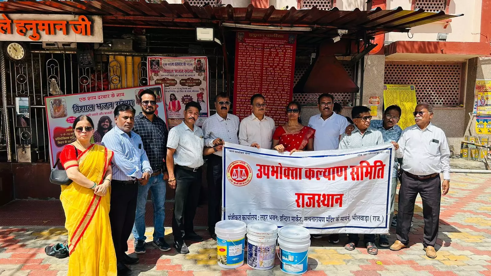 भीलवाड़ा। उपभोक्ता कल्याण समिति के तत्वाधान में वरिष्ठ समाजसेवी हेमंत कोठारी के सहयोग से शनिवार को रेल्वे स्टेशन परिसर स्थित हठीले हनुमान मंदिर के बाहर भीषण गर्मी के मद्देनजर राहगीरों व आमजन को 80 लिटर शीतल मसाला ऑर्गेनिक छाछ का निःशुल्क वितरण किया गया। भरी दोपहरी में शीतल छाछ के सेवन से राहगीरों के कंठ तर हो उठे। सभी ने इस सेवा कार्य के लिये समिति का धन्यवाद ग्यापित किया।