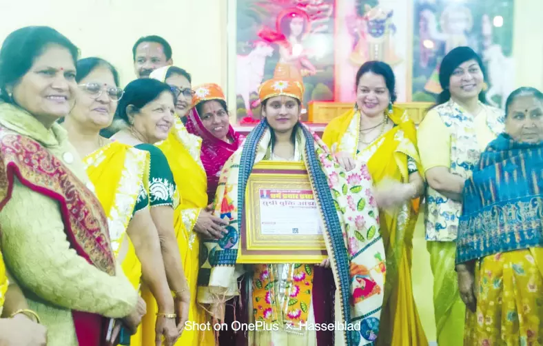 इस अवसर पर अंतरराष्ट्रीय माहेश्वरी कपल क्लब और स्वर्गीय रामजस सोडाणी स्मृति संस्थान की ओर से भजन गायिका युक्ति ओझा को राज्य स्तरीय स्वर्गीय रामजस सोडाणी स्मृति धर्म प्रचार प्रसार सम्मान 2025 से सम्मानित किया गया। संस्थान के मुख्य निदेशक अशोक सोडाणी ने बताया कि इस दौरान कई सामाजिक और धार्मिक संगठनों के पदाधिकारी व सनातन प्रेमी उपस्थित रहे। संस्थान की ओर से युक्ति ओझा के माता पिता तथा गुरुजन का भी सम्मान किया गया।