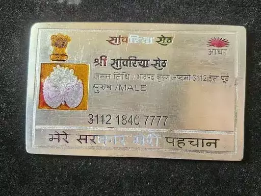 यह आधार कार्ड शुद्ध चांदी से निर्मित है, जिस पर बारीक और आकर्षक नक्काशी की गई है। कार्ड को भारत सरकार द्वारा जारी किए जाने वाले वास्तविक आधार कार्ड की तर्ज पर डिजाइन किया गया है। इसमें भारत का राजचिह्न अशोक स्तंभ और सांवरिया सेठ की तस्वीर अंकित की गई है।