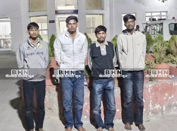 भीलवाड़ा BHN। शहर में भी व्यापारी के साथ डकैती की वारदात को अंजाम देने वाले बदमाशों को कोतवाली पुलिस ने बेनकाब कर दिया। इस गुटखा व्यापारी से स्कूटी सहित चार लाख रुपये की डकैती करने वाले चार शातिर अपराधियों को पुलिस ने गिरफ्तार कर लिया।अन्य की तलाश की जा रही है।