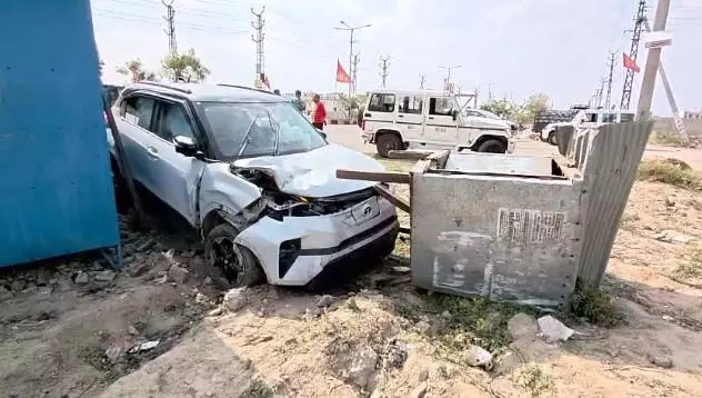 तेज रफ्तार कार ने बाइक सवार छात्र को मारी टक्कर, अनियंत्रित होकर केबिन में घुसी