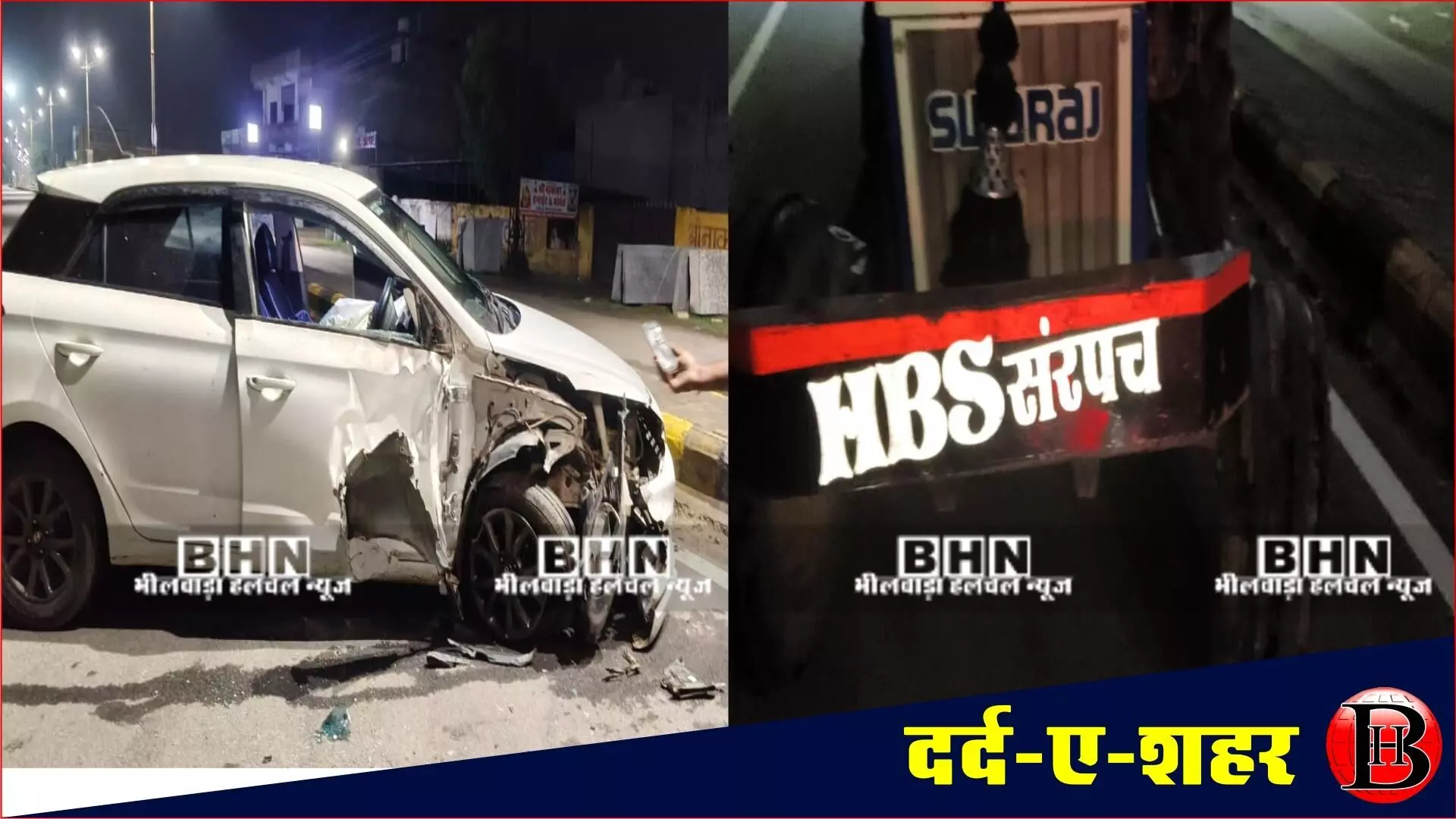 जानकारी के अनुसार, घटना अहिंसा बंगलो के पास रात करीब 11.45 बजे हुई। ट्रैक्टर-ट्रॉली गलत दिशा (रॉन्ग साइड) से आ रही थी और उसकी रफ्तार बहुत तेज थी। टक्कर इतनी जोरदार थी कि कार के परखच्चे उड़ गए। कार सवार युवक चंद्रशेखर आजाद नगर निवासी गिनीश साहू अपने दोस्त के साथ घर लौट रहा था तभी यह हादसा हो गया। ट्रैक्टर की नंबर प्लेट पर नंबर की जगह "HBS सरपंच" लिखा हुआ था। हादसे के बाद ड्राइवर ट्रैक्टर छोड़कर मौके से फरार हो गया। घटना की सूचना मिलते ही पुलिस मौके पर पहुंची और ट्रैक्टर-ट्रॉली को जब्त कर लिया। पुलिस ने कार चालक की रिपोर्ट के आधार पर मामला दर्ज कर जांच शुरू कर दी है। गौरतलब है कि भीलवाड़ा में बजरी खनन पर पूरी तरह से प्रतिबंध है, लेकिन बजरी माफिया बेखौफ होकर रात के अंधेरे में बजरी की सप्लाई कर रहे हैं।
