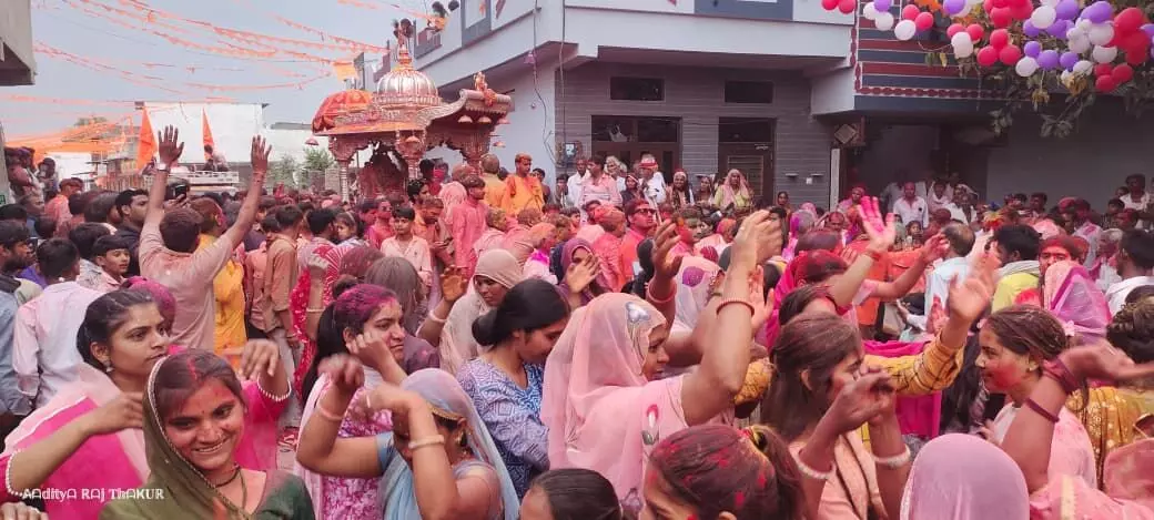 सिंगोली श्याम अनूठा संगम देखने को मिला, शोभायात्रा में अबीर गुलाल से सराबोर हो गया
