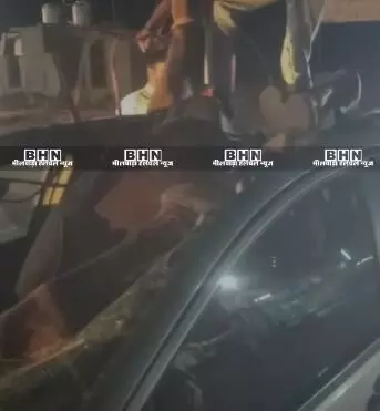टक्कर के बाद होंडा सिटी कार पर जा गिरा ऊंट, चालक की मौत, दंपति और बेटे बेटी बचे बाल -बाल