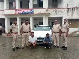 नाकाबंदी के दौरान पकड़ी फर्जी नंबर प्लेट लगी कार, तस्करी में आने वाली थी काम :2 युवक गिरफ्तार