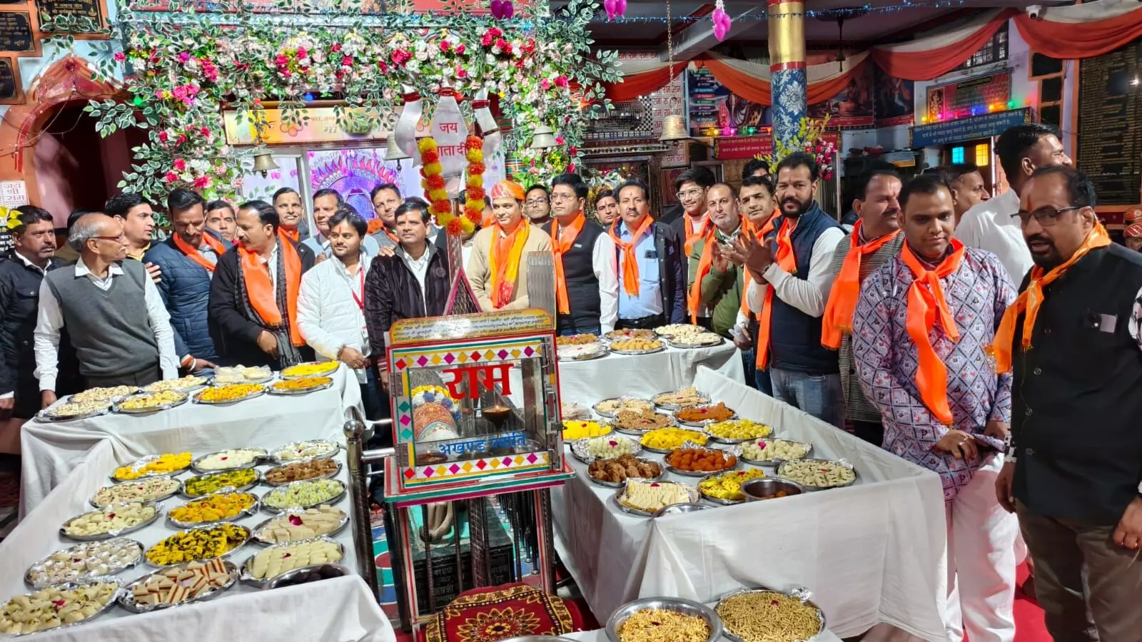 दोपहर बारह बजे माँ दधिमथी को छप्पन भोग का भव्य अन्नकूट अर्पित किया गया। इसके पश्चात महाआरती हुई, जिसमें पूरा पांडाल माता के जयकारों से गूंज उठा। अंत में श्रद्धालुओं को प्रसाद वितरित किया गया।