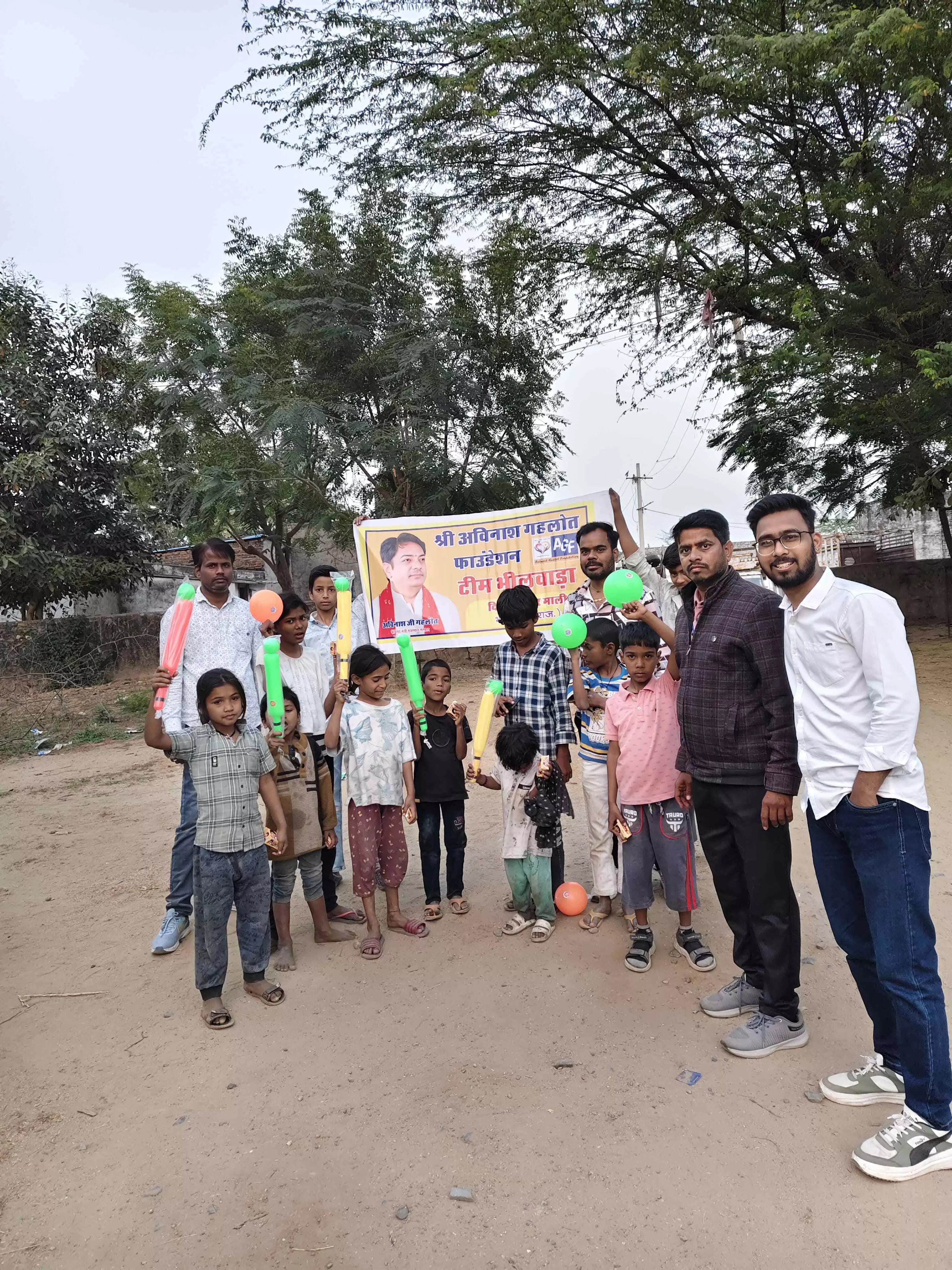 भीलवाड़ा |अविनाश गहलोत फाउंडेशन भीलवाड़ा के द्वारा जुग्गी झोपड़ियों में रहने वाले बच्चों को कैबिनेट मंत्री अविनाश गहलोत की प्रेरणा से खेल सामग्री ओर अल्पाहार वितरण कार्यक्रम आयोजित किया।