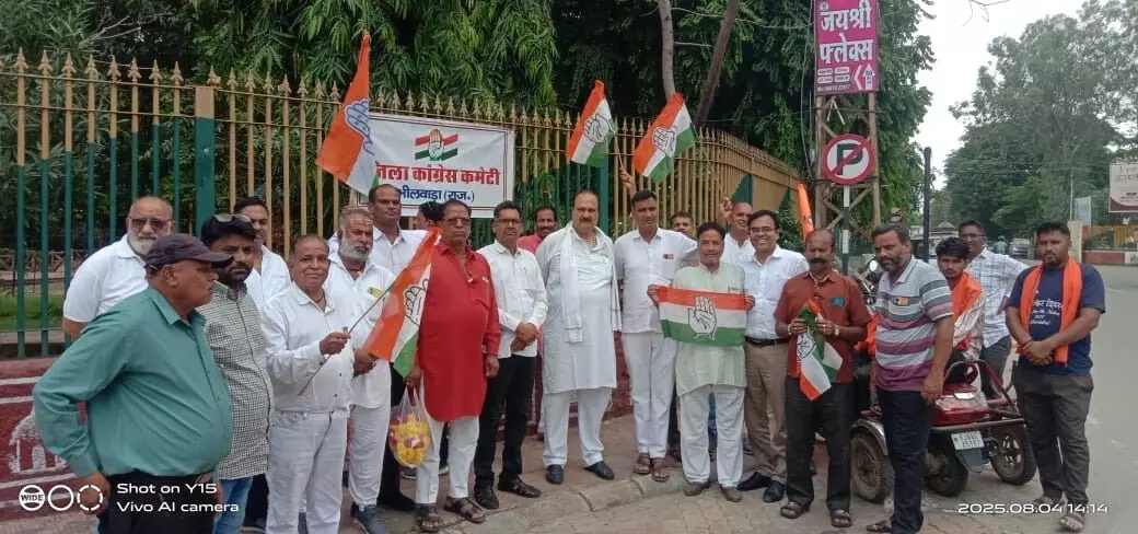 भीलवाड़ा । जिला कांग्रेस कमेटी अध्यक्ष अक्षय त्रिपाठी के नेतृत्व में कलेक्ट्री चौराहे पर कांग्रेसजनों ने मांडल पाल से चलकर हरणी महादेव तक जाने वाली कावड़ यात्रा का नेतृत्व कर रहे पूर्व राजस्व मन्त्री एवं माण्डल विधायक रामलाल जाट का उपरना एवं फूलमाला पहनाकर तथा कांवड़ियों पर पुष्पवर्षा कर स्वागत किया गया। चन्द्र प्रकाश अमरवाल ने बताया कि इस अवसर पर कैलाश सेन , एडवोकेट ईश्वर खोईवाल ,चेतन पेशवानी , गिरधारी बलाई , जिला सेवादल अध्यक्ष योगेश सोनी , महासचिव शिवराज सुराणा ,संदीप टेलर ,कुन्दन शर्मा, महावीर लढ़ा , लक्ष्मीलाल धमाणी , , सुरेश बंब , जगदीश चन्द्र ओझा , मुस्ताक अली मंसूरी , कलीम काजी , राजेन्द्र सिंह राठौड़ , अली मंसूरी , गौरीशंकर दायमा , श्याम लाल पाराशर , महावीर व्यास ,गोपाल बांगड़ , मुराद कायमखानी , इस्लाम शेख , राकेश जीनगर , बृजमोहन जायसवाल , राजेश शर्मा , राधेश्याम रेगर ,रामपाल दरोगा , खेमराज पनवा सहित कई कांग्रेसजन उपस्थित रहे।