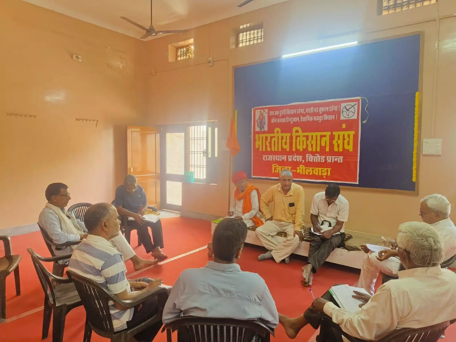 भीलवाड़ा (रमेश चंद्र डाड)संस्कृति मंदिर अशोक नगर में आयोजित हुई जिसमें संगठन के बारे में चर्चा की गई प्रांत संगठन प्रमुख परमानंद बताया की ग्राम पंचायत तक किसानों को जोड़ा जाए जिससे किसानों का उत्थान और आर्थिक उन्नति के बारे में जागरूक किया जाए और 10 अप्रैल 2026 से 12 अप्रैल तक चलने वाली प्रांत अभ्यास वर्ग प्रतापगढ़ में होने वाली कार्यक्रम में भीलवाड़ा जिले से हर तहसील से कार्यकर्ताओं को ले जाने के लिए संपर्क कर जिसमें प्रदेश अफिम प्रमुख बद्री लाल जाट संभाग उपाध्यक्ष सोहन लाल माली प्रांत विधि प्रमुख भागुलाल गुजर महामंत्री लादु लाल जाट जिला प्रचार प्रमुख श्याम लाल सुथार कार्यालय प्रमुख भेरूलाल गुजर रवी आचार्य कनहैया लाल प्रजापत आदि मौजूद थे।