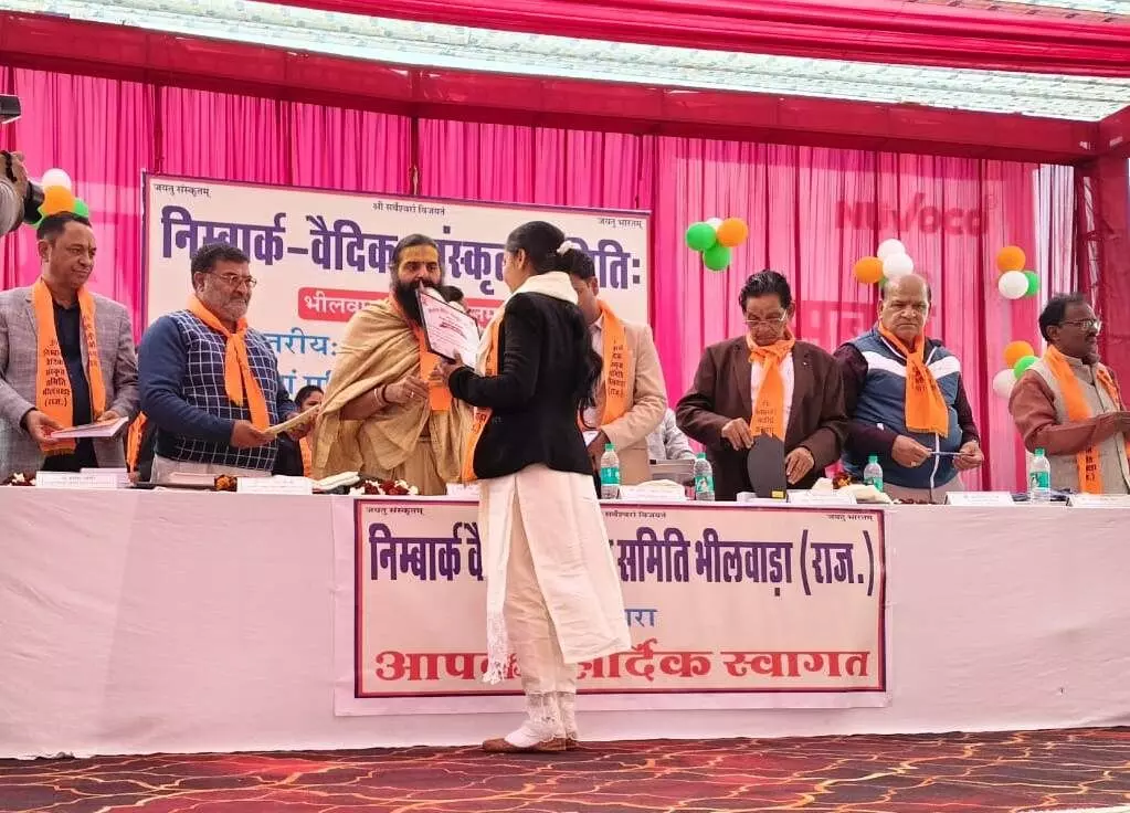 भीलवाड़ा। निंबार्क वैदिक संस्कृति समिति भीलवाड़ा द्वारा आयोजित मंडल स्तरीय संस्कृत वाङ्मय पुरस्कार वितरण एवं सम्मान समारोह आजाद नगर स्थित वैदिक एकेडमी सेकेंडरी स्कूल में हमीरगढ़ के उप जिला कलेक्टर झंवरलाल मित्तल के मुख्य आथित्यए संदीप ट्रक प्राइवेट लिमिटेड के चेयरमैन गोपाल राठी की अध्यक्षता एवं निंबार्क आश्रम के महंत मोहन शरण जी के संरक्षण में संपन्न हुआ।