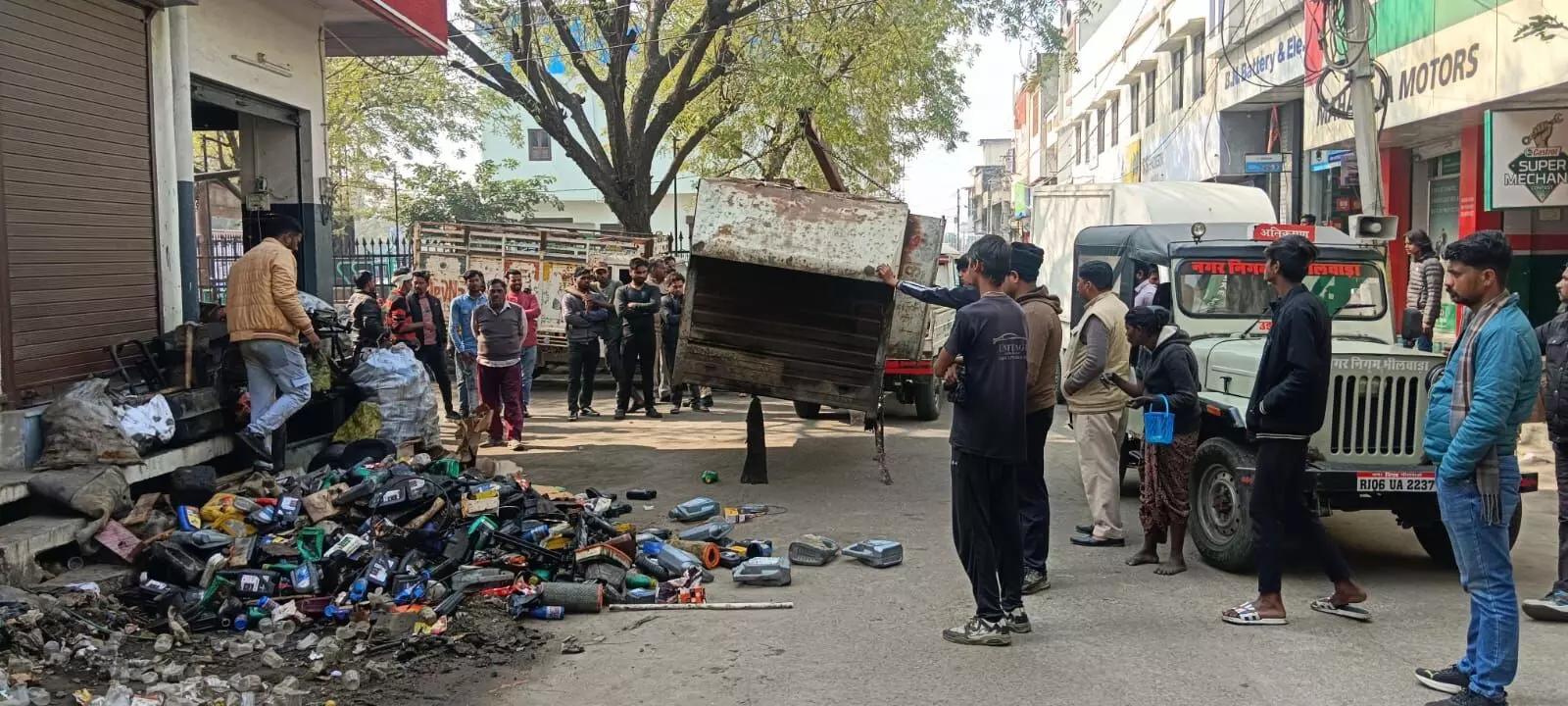 भीलवाड़ा। नगर निगम द्वारा शहर में यातायात व्यवस्था को सुचारू बनाए रखने और अतिक्रमण के खिलाफ अभियान को आगे बढ़ाते हुए पुराना बस स्टैंड रोड पर कार्रवाई की गई। यहां मोटर बॉडी बनाने वालों द्वारा सड़क किनारे खाली मोटर बॉडी रखकर लंबे समय से अतिक्रमण किया जा रहा था, जिससे आमजन को आवागमन में भारी परेशानी का सामना करना पड़ रहा था।