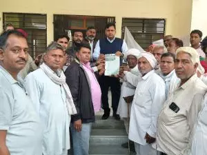 फसल मुआवजे की मांग को लेकर किसानों ने तहसीलदार को सौंपा ज्ञापन