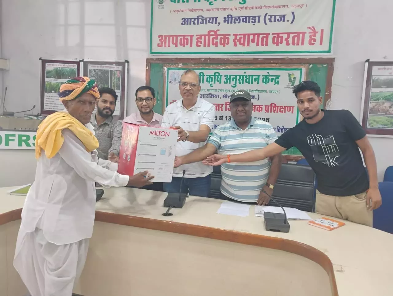 भीलवाड़ा |बारानी कृषि अनुसंधान केन्द्र आर्जिया पर चल रहे कृषक प्रशिक्षण कार्यक्रम का समापन हुआ। बारानी कृषि अनुसंधान केन्द्र के मुख्य वैज्ञानिक डा ललित छाता ने बताया कि आत्मा चित्तौड़गढ़ प्रायोजित पांच दिवसीय कृषक प्रशिक्षण में चित्तौड़गढ़ जिले की विभिन्न पंचायत समिति क्षेत्र से करीब 30किसानों को उद्यानिकी पशु पालन कृषि की नवीनतम जानकारी प्रदान की।साथ ही भीलवाड़ा डेयरी कृषि विज्ञान केंद्र सुवाना कृषि महाविद्यालय का भ्रमण करा वहा संचालित योजनाओं एवम फल एवम बगीचों की तकनीकी जानकारी प्रदान करने के अलावा कृषि विभाग भीलवाड़ा उद्यान विभाग आत्मा भीलवाड़ा के अधिकारियों द्वारा सरकार द्वारा किसानो के लिए संचालित योजनाओं की जानकारी दी। प्रशिक्षण में मुख्य वैज्ञानिक डा ललित छाता डा के सी नागर डा सुचित्रा दाधीच डा सी एम यादव डा एल एल पंवार डा शंकर सिंह राठौड़ मीना चौधरी डा जे के बाल्यान डा क्यू जी कुरेशी सहित सुनीता मीना निशु बैरवा अंकित मीना आदि का सहयोग सराहनीय रहा । पांच दिवसीय प्रशिक्षण के समापन से पूर्व किसानो की मूल्यांकन परीक्षा ली गई जिसमे प्रथम द्वितीय एवम तृतीय स्थानों पर रहे किसानो को पुरुष्कार दिए गए। समापन दिवस पर भीलवाड़ा कृषि खंड के अतिरिक्त निदेशक इंद्र सिंह संचेती ने किसानो को पुरुष्कार एवम प्रमाणपत्र वितरित किए।