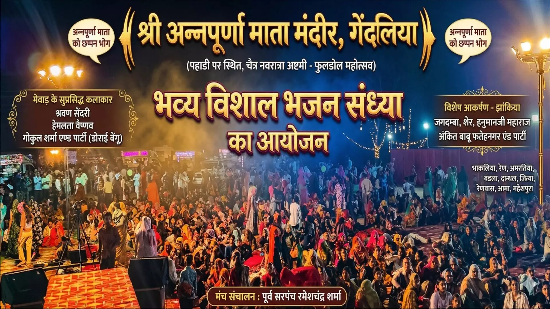गेंदलिया: अन्नपूर्णा माता मंदिर में उमड़ा आस्था का सैलाब, भव्य फूलडोल महोत्सव व भजन संध्या संपन्न