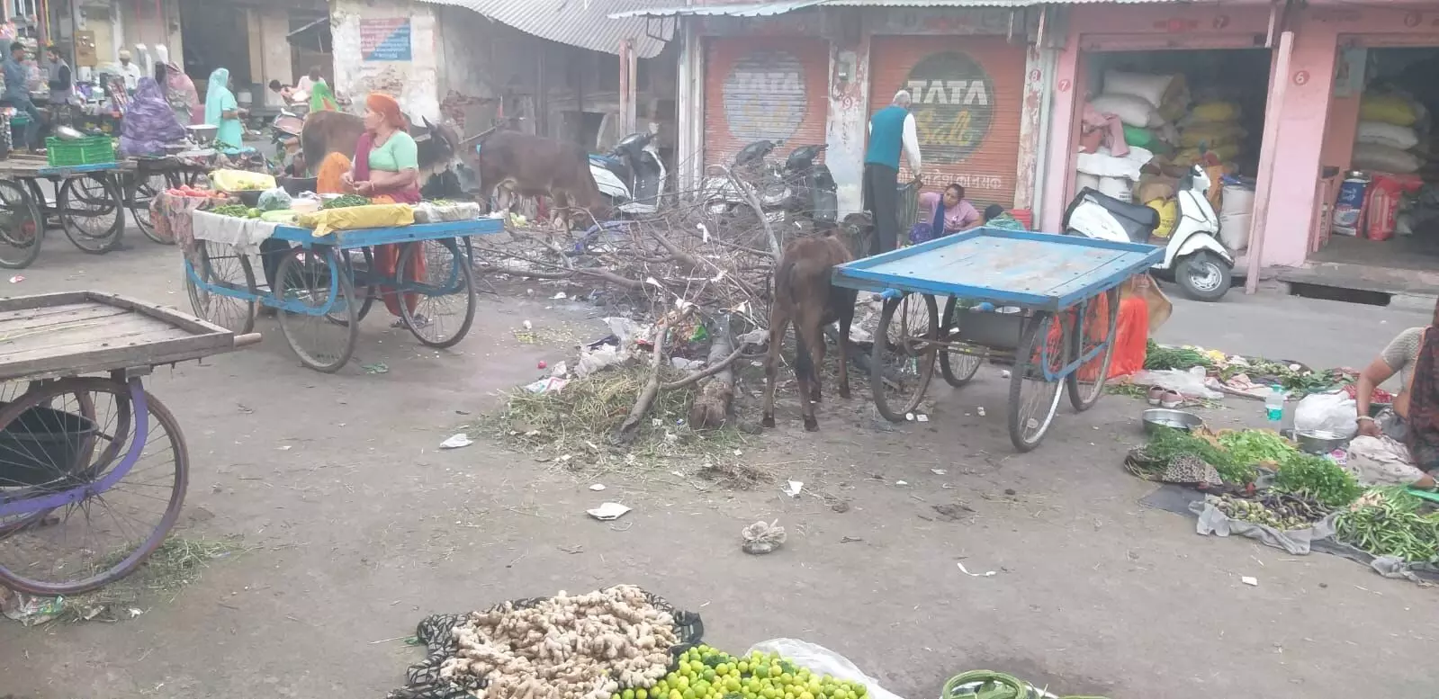 भीलवाड़ा। शहर की सब्जी मंडी चौक में होली दहन के बाद छोड़ी गई कांटेदार झाड़ियों और अधजली लकड़ियों के कारण पूरा क्षेत्र अस्त-व्यस्त हो गया है। त्योहारी सीजन में बाजार में आने-जाने वाले आमजनों और सब्जी विक्रेताओं को आवागमन में भारी परेशानी का सामना करना पड़ रहा है।
