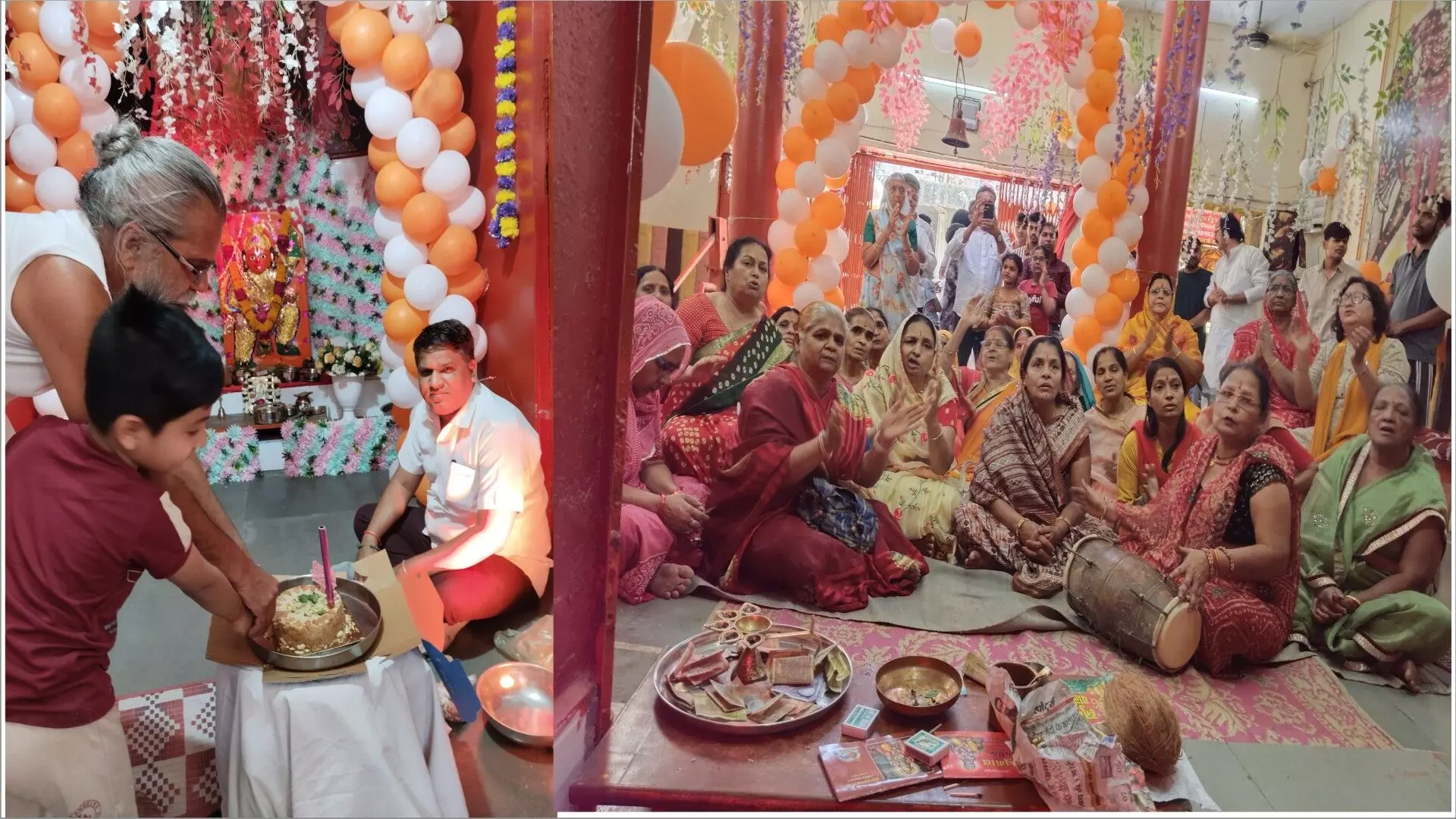 इस दौरान महिला मंडल द्वारा "भोग लगावो बालाजी" जैसे मधुर भजनों की प्रस्तुति दी गई। पूरा परिसर "बधाई हो बधाई, अंजनी के लल्ला की" और "जय श्री राम" के उद्घोष से गुंजायमान हो उठा। उत्सव का विशेष आकर्षण मिल्क केक रहा, जिसे पुजारी जी, नन्हे बाल हनुमान और ट्रस्टियों ने मिलकर काटा। इसके पश्चात ढोल-मंजीरों की थाप पर महिला मंडल ने भक्तिमय भजनों से माहौल को राममय कर दिया।