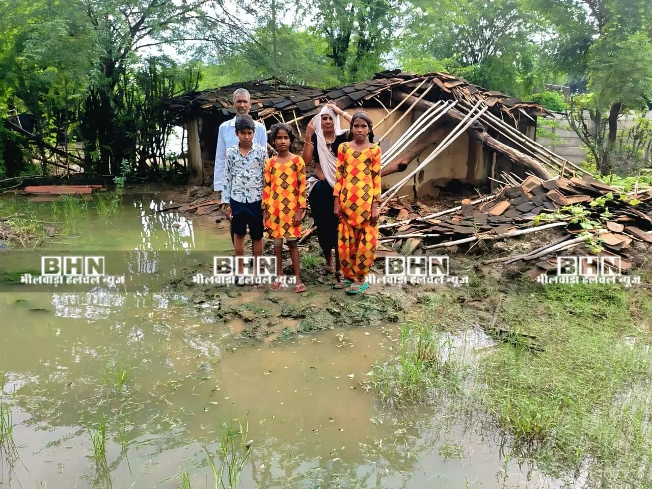 सिदडियास में बारिश से गिरा कच्चा घर परिवार बाल-बाल बचा