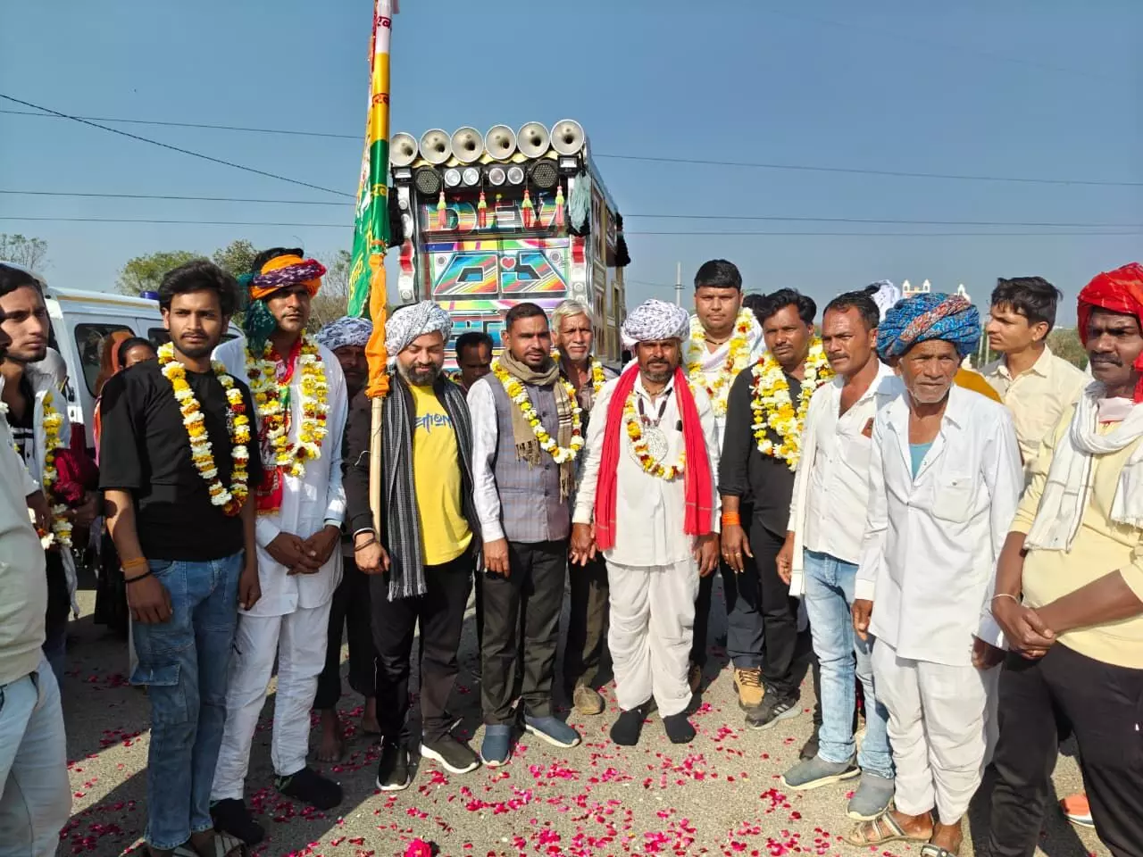 मालासेरी डूंगरी पदयात्रा का कोरनास चौराहे पर किया स्वागत