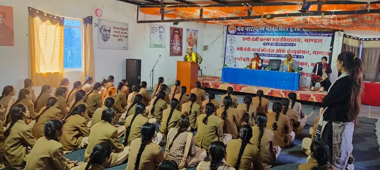 मांडल (सोनिया सागर)। रूपी देवी कन्या महाविद्यालय मांडल में पुलिस प्रशासन दुवारा सड़क सुरक्षा सप्ताह पर कार्यशाला का आयोजन किया। कार्यशाला का प्रारम्भ पुलिस निरीक्षक थानाधिकारी मांडल रोहितांश यादव, उपनिरीक्षक रविन्द्र सिंह, महाविद्यालय प्राचार्या डॉ. ज्योति वर्मा, सचिव ने द्वीप प्रज्वलित कर कार्यकर्म की शुरुआत की।पुलिस निरीक्षक थानाधिकारी मांडल रोहितांश यादव ने सड़क सुरक्षा नियमों की जानकारी दी व छात्राओं से वार्तालाप की। उप निरीक्षक रविन्द्र सिंह ने वाहनो के बीमा, परिवहन संकतो की जानकारी दी। प्राचार्य डॉ. ज्योति वर्मा ने अतिथियों को स्मृति चिन्ह भेटकर आभार व्यक्त किया और छात्राओं को यातायात नियमों की पालना करने के आग्रह कर स्वयं नियमों को मानने व अन्य अपने परिवार के सदस्य गणो को भी अतिथियो दुवारा प्राप्त जानकरी पहुंचाने के लिए प्रेरित किया।इस कार्यशाला में महाविद्यालय की लगभग 350 छात्राओं व महाविद्यालय स्टाफ ने भाग लिया l