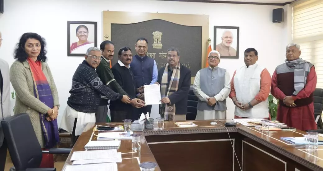 भगवानपुरा ( कैलाश शर्मा ) अखिल भारतीय राष्ट्रीय शैक्षिक महासंघ (ABRSM) के एक प्रतिनिधिमंडल ने आज भारत सरकार के शिक्षा मंत्रालय में केंद्रीय शिक्षा मंत्री धर्मेंद्र प्रधान से भेंट कर शिक्षक पात्रता परीक्षा (TET) से संबंधित माननीय सर्वोच्च न्यायालय के 1 सितम्बर 2025 के निर्णय (सिविल अपील संख्या 1385/2015) के संदर्भ में एक विस्तृत ज्ञापन प्रस्तुत किया। प्रतिनिधिमंडल ने नियुक्ति तिथि की परवाह किए बिना सभी सेवारत शिक्षकों पर TET अनिवार्य किए जाने पर गहरी चिंता व्यक्त करते हुए कहा कि यदि इस निर्णय को पूर्वव्यापी रूप से लागू किया गया, तो इससे देशभर के लगभग 12 लाख शिक्षकों की सेवा-सुरक्षा, वरिष्ठता, पदोन्नति तथा आजीविका पर प्रतिकूल प्रभाव पड़ने की आशंका है।
