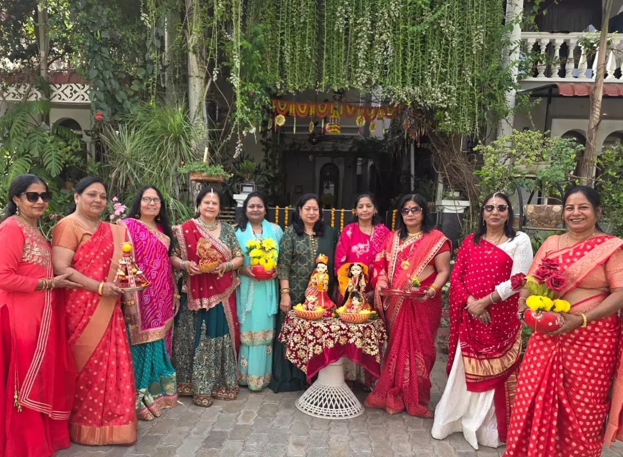 भीलवाड़ा । शहर के एक निजी रिसॉर्ट में बुधवार को पद्मिनी क्लब की ओर से गणगौर उत्सव का भव्य आयोजन किया गया। उत्सव के दौरान महिलाओं ने पारंपरिक गीतों पर नृत्य कर ईसर-गणगौर की आराधना की और देश में सुख-समृद्धि की कामना की। क्लब अध्यक्ष सीमा सोमानी ने बताया कि कार्यक्रम की अध्यक्षता नगर निगम की पूर्व सभापति मधु जाजू और कल्पना माहेश्वरी ने की। समारोह का शुभारंभ ईसर-गणगौर की आरती के साथ हुआ। इस अवसर पर क्लब की सदस्यों ने सुहाग की अमरता और खुशहाली के लिए प्रार्थना की। उत्सव में राजस्थानी संस्कृति की झलक देखने को मिली, जहाँ महिलाओं ने लोक गीतों पर सामूहिक नृत्य किया और विभिन्न प्रकार के मनोरंजक खेलों का आनंद लिया।