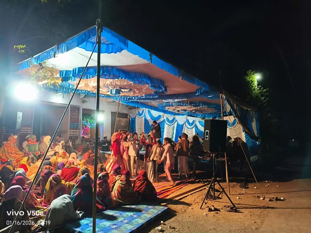 भजन संध्या की शुरुआत नंदा नाथ और मदन गुर्जर ने गणपति वंदना और गुरु के साथ की। इसके बाद ओमप्रकाश गुर्जर और विनोद माली ने भजनों को प्रस्तुत किया। इस अवसर पर गेणोली के गायक और कलाकार लादू लाल माली, दुर्गा माली, पप्पू माली और सांवरा माली भी मौजूद रहे।