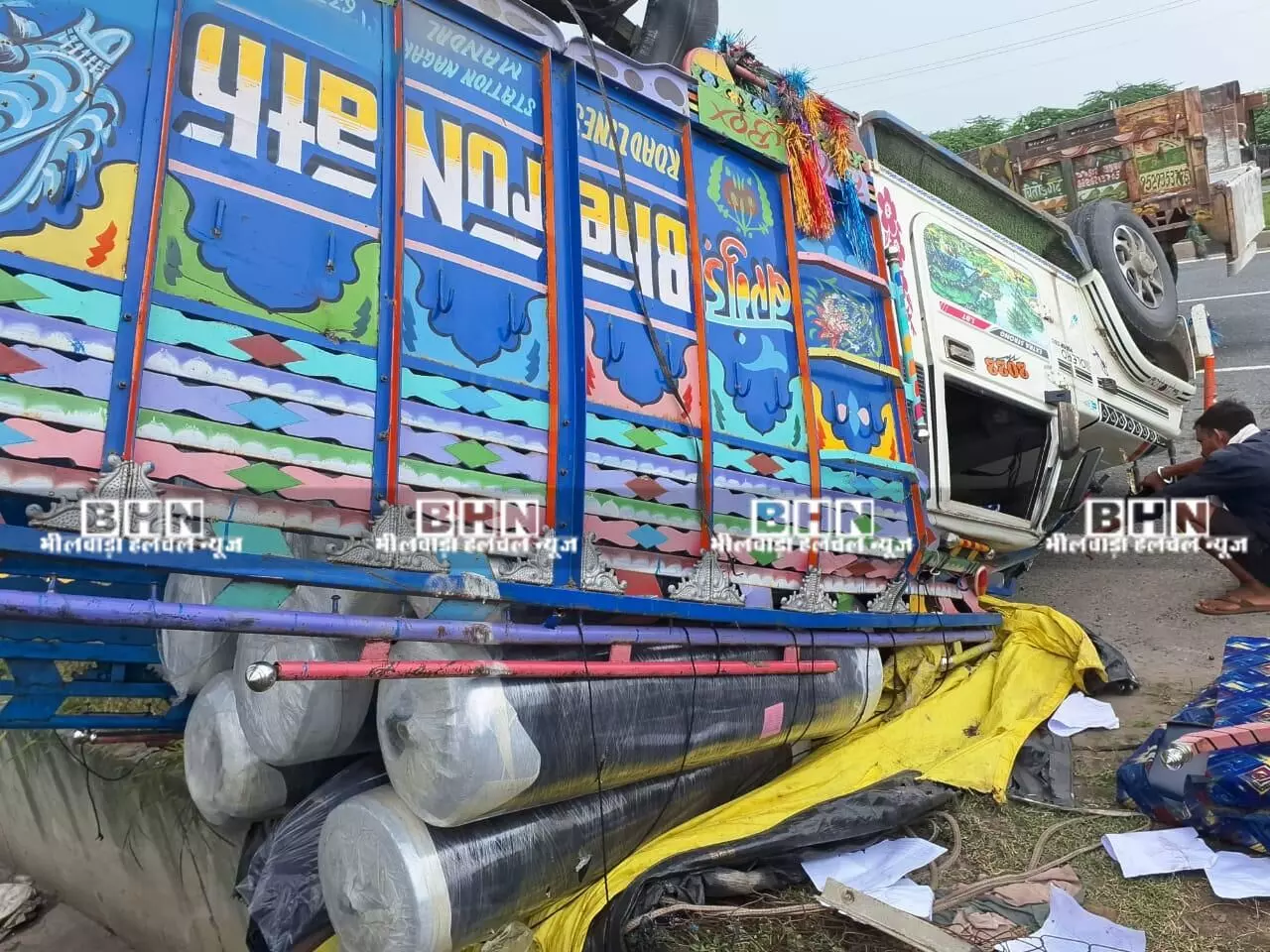 भीलवाड़ा चित्तौड़गढ़ नेशनल हाईवे पर पिकअप गाड़ी अनियंत्रित होकर पलटी