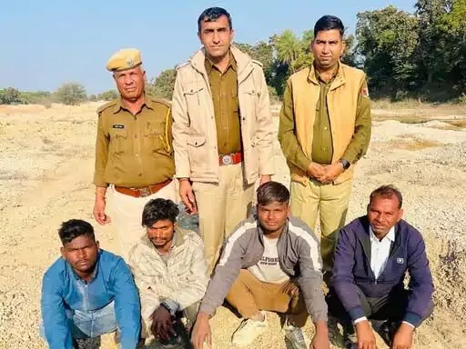 सूचना पर पहुंची पुलिस टीम ने मौके पर दबिश दी। वहां बिना अनुमति बजरी का अवैध खनन किया जा रहा था। पुलिस ने मौके से चार ट्रैक्टर और दो जेसीबी मशीनें जब्त कर चार युवकों को हिरासत में लिया। गिरफ्तार आरोपियों के खिलाफ नियमानुसार कानूनी कार्रवाई की जा रही है।