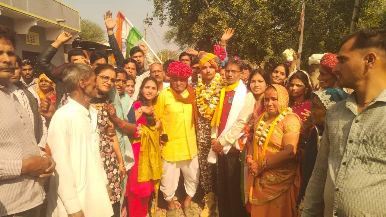 पुरोहित का वायु सेना प्रशिक्षण पूरा करने पर गांव में स्वागत