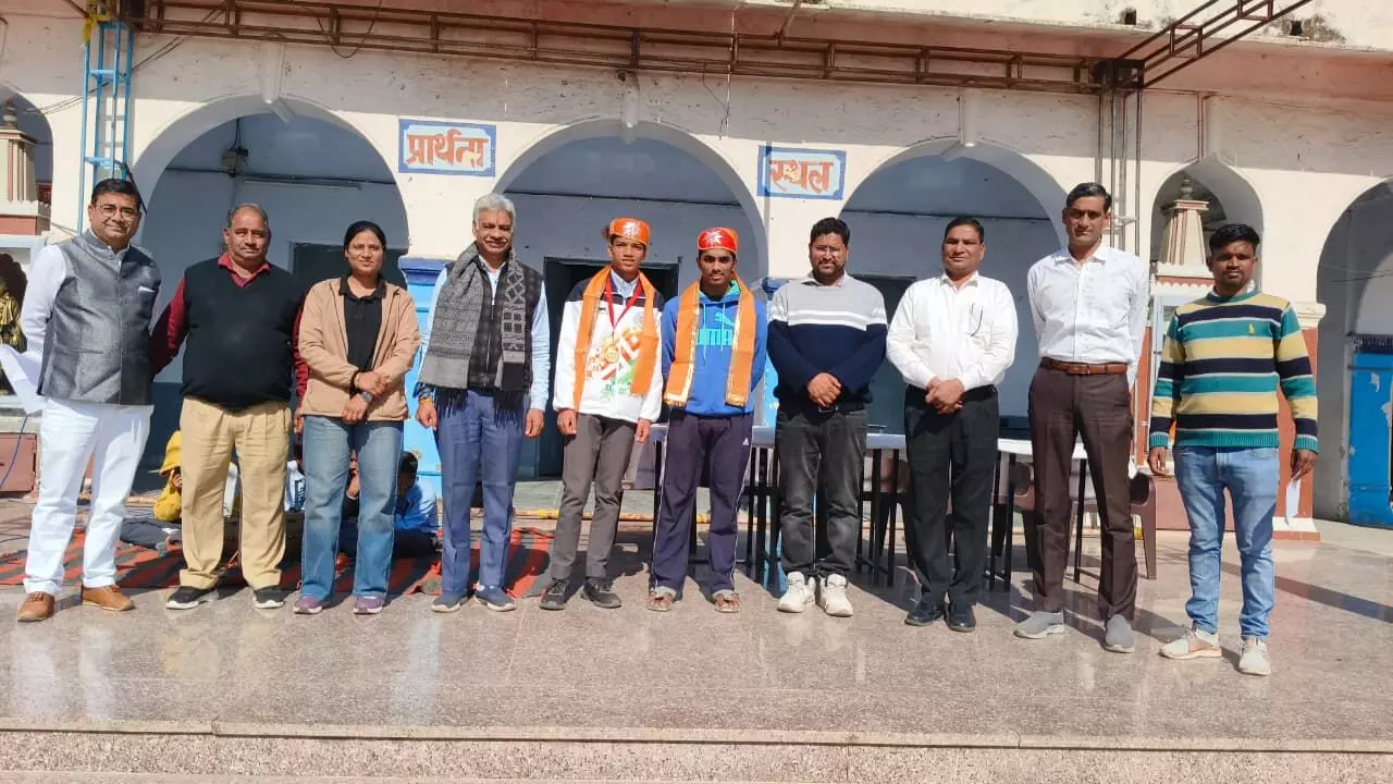 भीलवाड़ा |भीलवाड़ा राजेन्द्र मार्ग स्कूल के प्रधानाचार्य राजेन्द्र सिंह गहलोत ने बताया कि राष्ट्र स्तरीय विद्यालयी नेटबॉल (17 वर्ष छात्र) खेलकूद प्रतियोगिता में राजेन्द्र मार्ग स्कूल के छात्र प्रिंस सुवालका ने प्रथम स्थान प्राप्त कर गोल्ड मेडल हासिल किया। साथ ही राजेन्द्र मार्ग स्कूल के छात्र देवेन्द्र सिंह सोलंकी ने राज्य स्तरीय विद्यालयी नेटबॉल (19 वर्ष छात्र) खेलकूद प्रतियोगिता में गोल्ड मेडल जीत कर कर राष्ट्रीय स्तरीय प्रतियोगिता में भी भाग लिया।