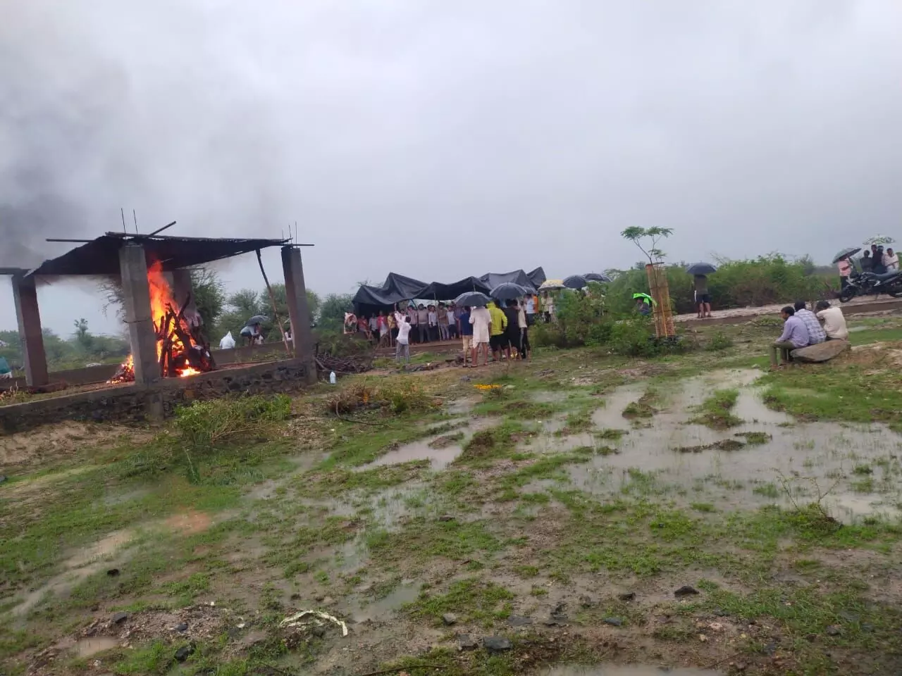 बारिश ने अंतिम संस्कार में डाली बाधा, तेली खेड़ा शमशान में अव्यवस्था