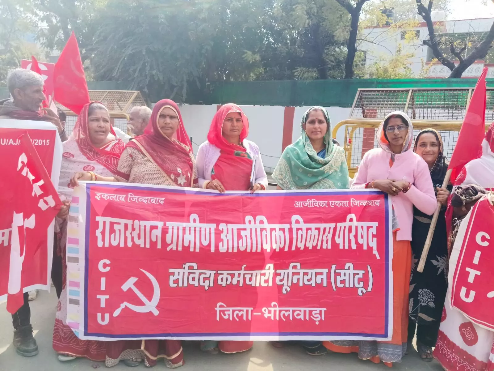 भीलवाड़ा । संयुक्त मोर्चा के राष्ट्रव्यापी आह्वान पर आज राजस्थान आजीविका विकास परिषद के संविदा कर्मचारियों ने अपनी लंबित मांगों को लेकर जोरदार प्रदर्शन किया। आजीविका संगठन की जिला अध्यक्ष अनीता कंवर के नेतृत्व में बड़ी संख्या में महिला एवं पुरुष कर्मचारी मुखर्जी पार्क में एकत्रित हुए और वहां से रैली के रूप में कलेक्ट्रेट पहुंचे।